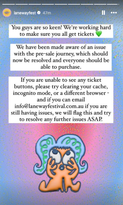 Thankfully, Laneway quickly recognized the issue and shared some advice on Instagram Stories.