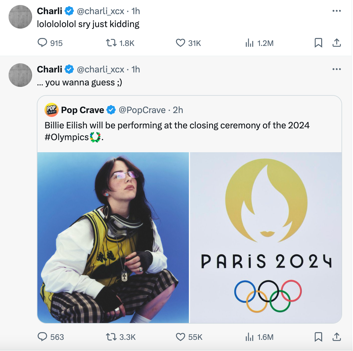 That being said, if Billie sings “Guess” and brings out Charli xcx, I’m going to fkn lose it.