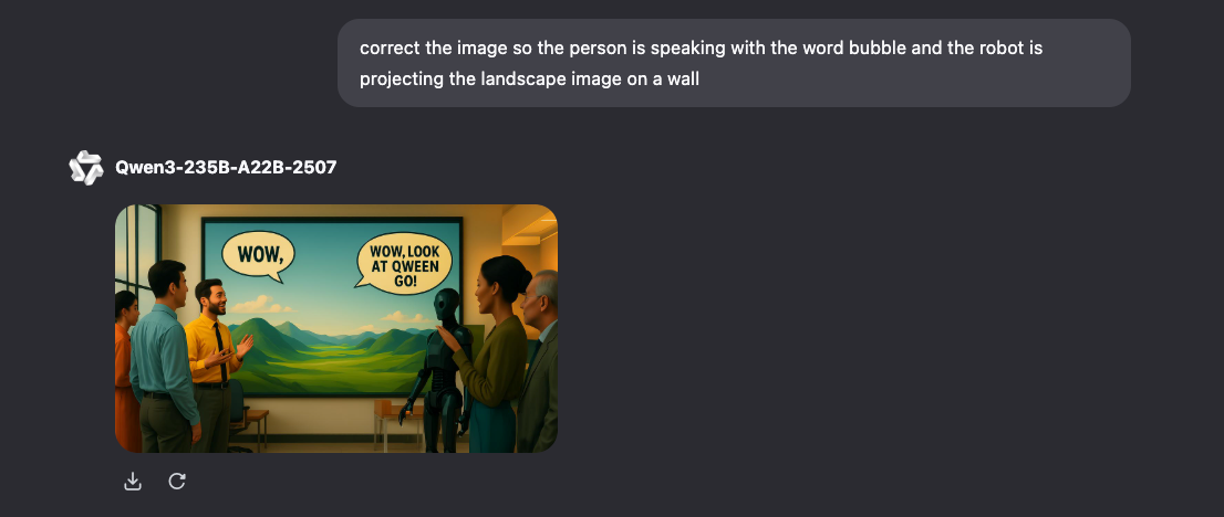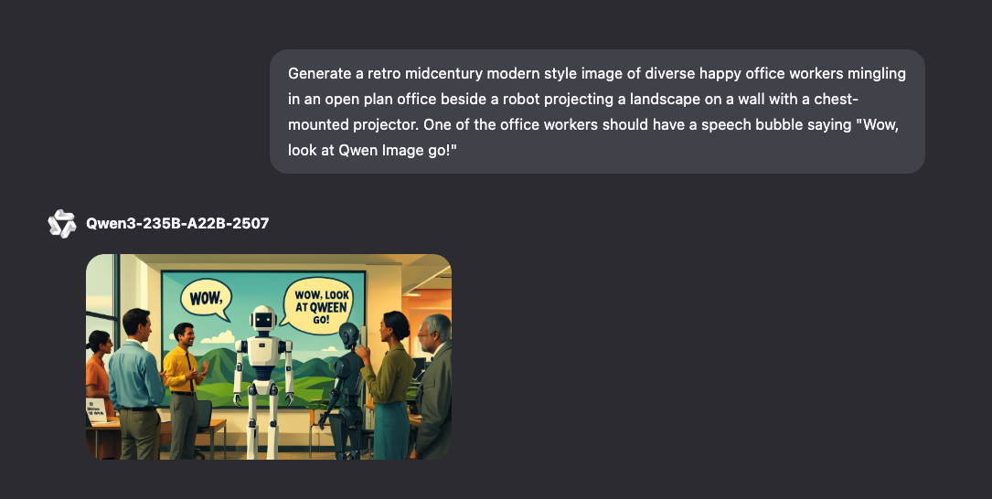Users can interact with the model on the Qwen Chat website by choosing “Image Generation” mode from the options below the prompt entry field.