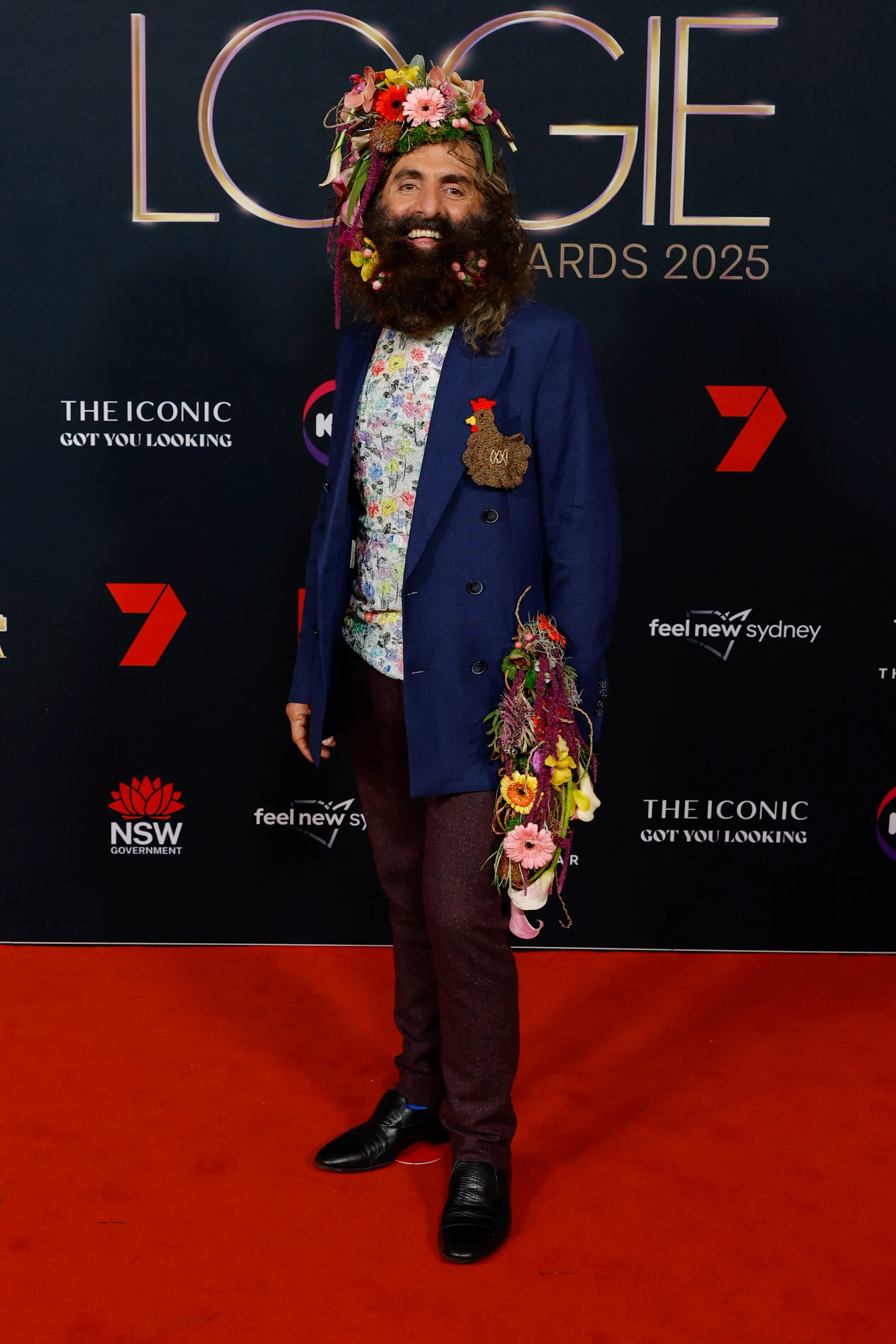 Just in case you forgot he was the host of a gardening show, Gardening Australia star Costa Georgiadis graced the Logies red carpet with a full flowerbed perched atop his head. It's reminiscent of The Capitol from The Hunger Games, but he pulls it off with style.