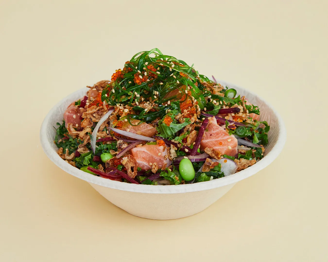 Fortunately, in my modest opinion, the O.G is among the finest bowls on their menu as it includes sashimi salmon (or you can switch it for chicken or tofu if you prefer), edamame, beetroot strips, onion, tobiko, crispy shallots, sesame dressing, and — the pièce de résistance — seaweed salad!!!!